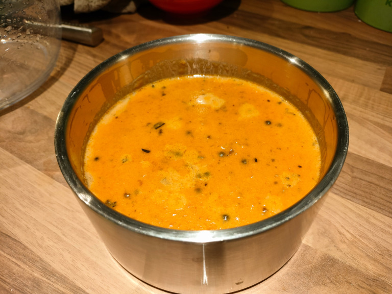 * Saucen kan nu godt vente til resten af maden er klar, den skal blot varmes op igen.*