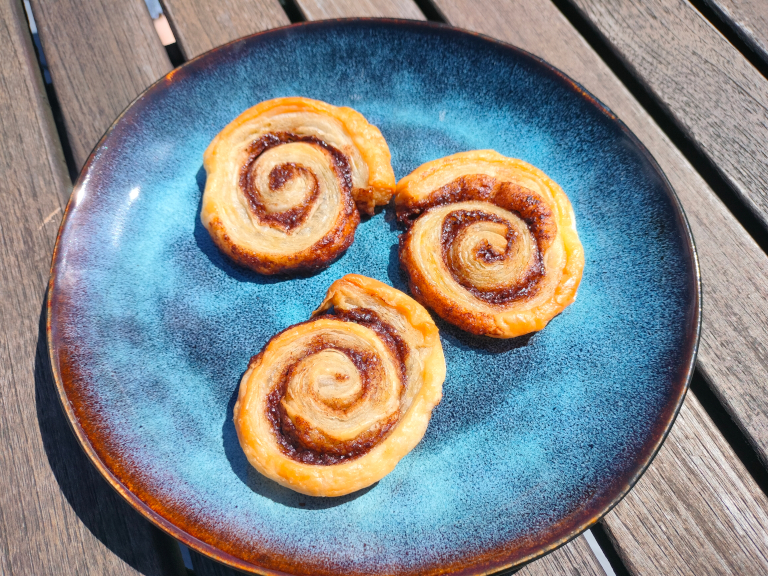 Rouladen skæres ud i 20-30 stykker, der placeres på et stykke bagepapir på en bageplade og bages ved 200° i ca. 10-12 min.