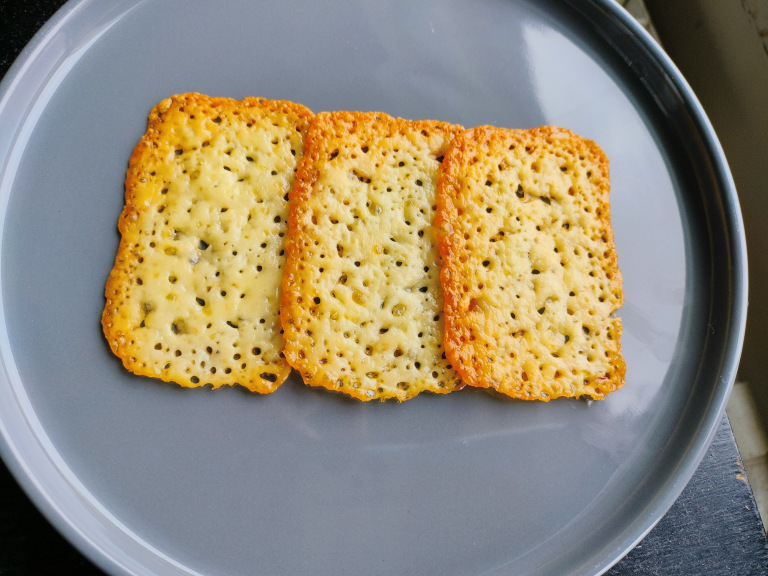 9-12 skiver cheddarost - størrelse på skiverne afgør hvor mange der bliver på en bageplade, da de ikke må røre hinanden