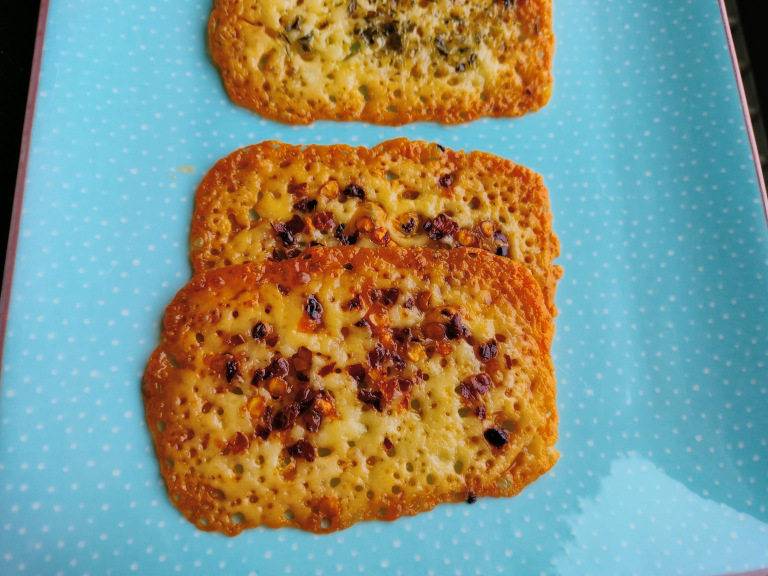 9-12 skiver cheddarost - størrelse på skiverne afgør hvor mange der bliver på en bageplade, da de ikke må røre hinanden