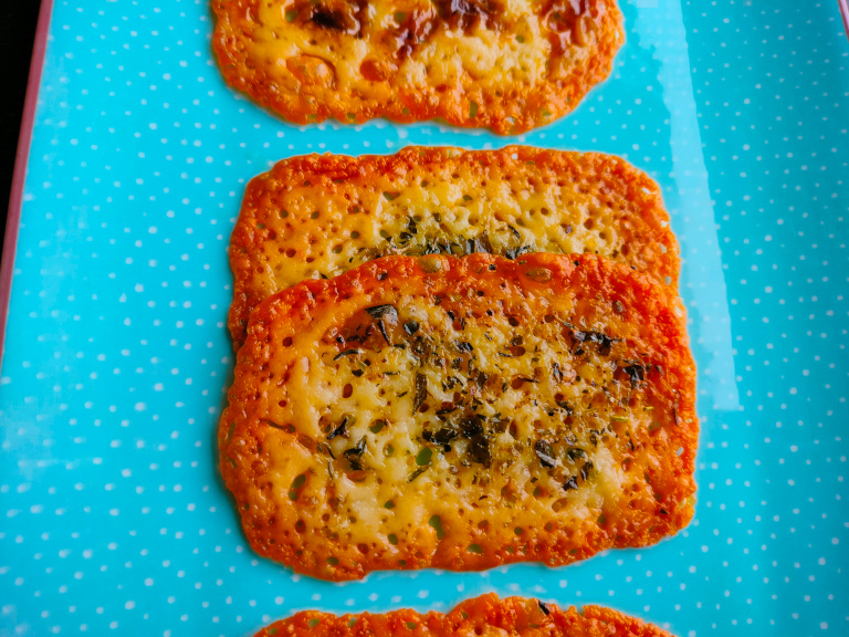 9-12 skiver cheddarost - størrelse på skiverne afgør hvor mange der bliver på en bageplade, da de ikke må røre hinanden