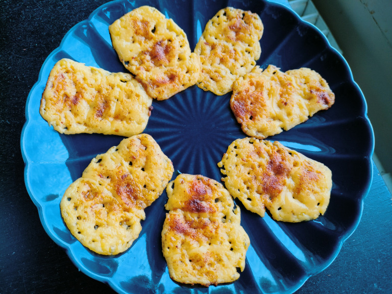 9-12 skiver cheddarost - størrelse på skiverne afgør hvor mange der bliver på en bageplade, da de ikke må røre hinanden
