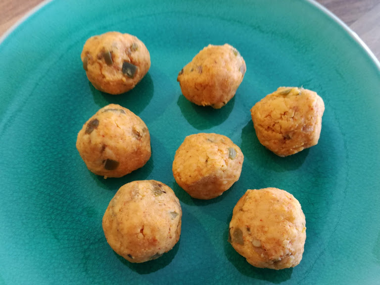 Ingredienserne røres godt sammen, og presses sammen i kugler.