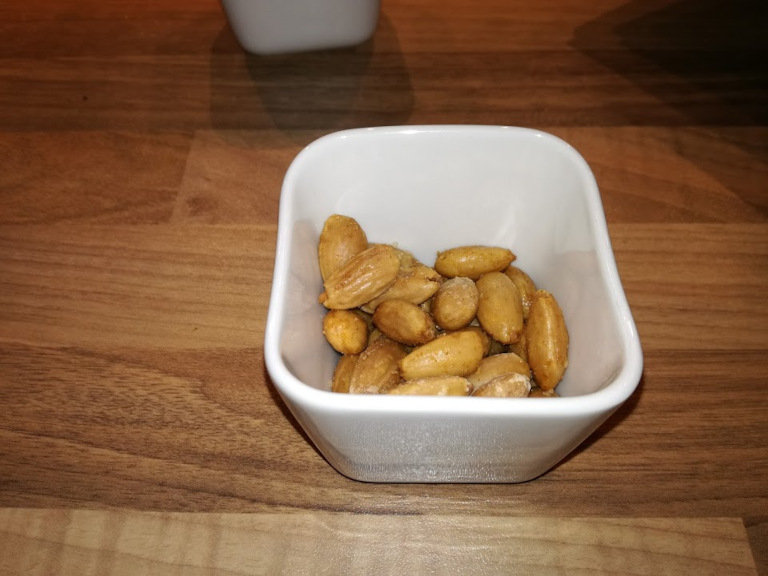 Saltet og chiliblandingen opløses i det kogende vand og mandlerne tilsættes. Lad trække i 15 min. De skal være tildækkede.
